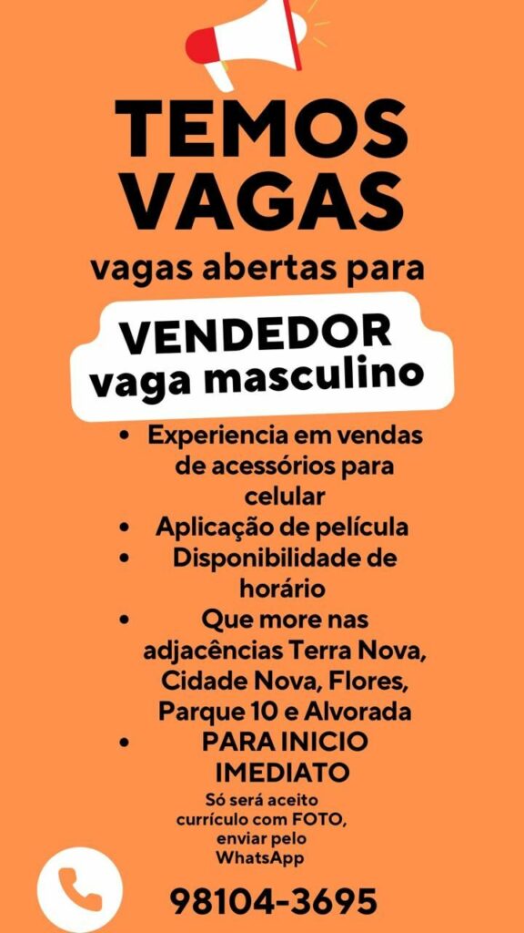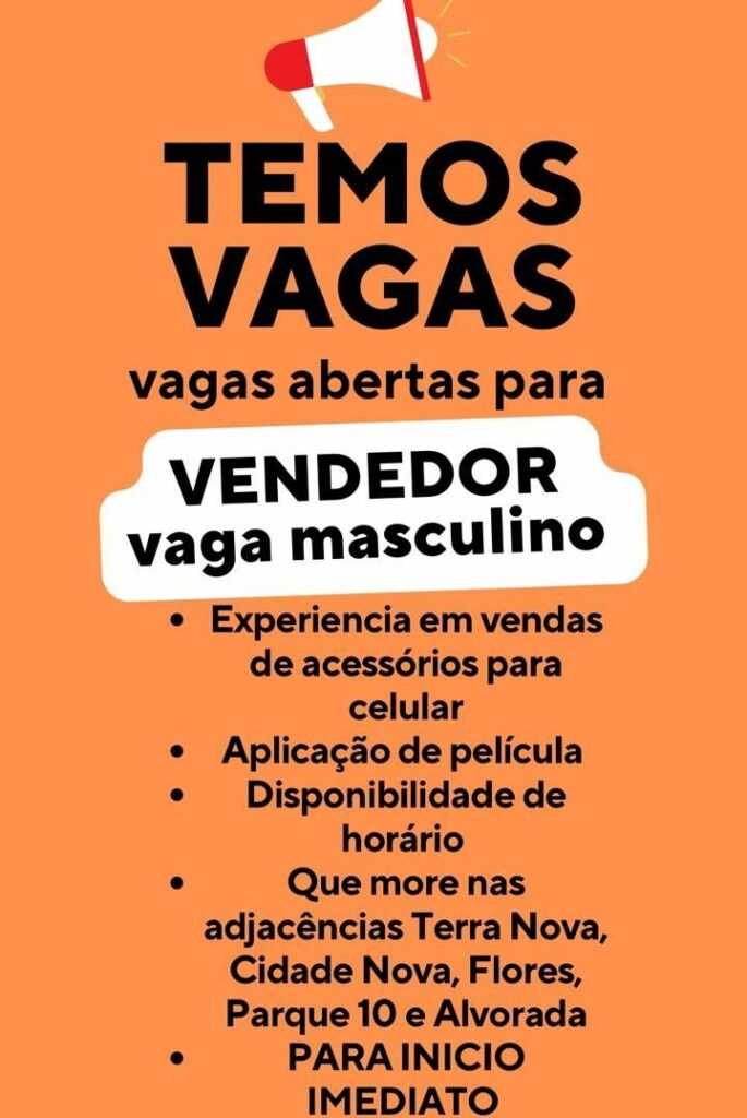 Seleção para vaga de Vendedor; Envie seu currículo!