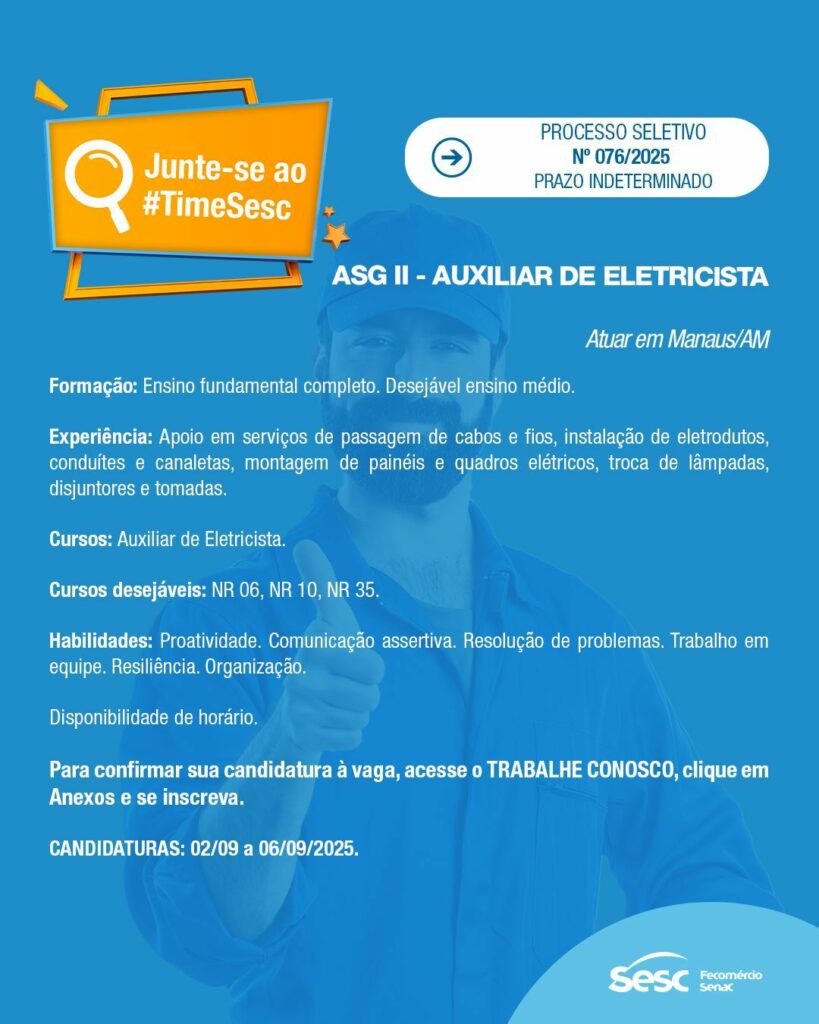 • Eletricista, Serralheiro e mais 110 vagas de emprego no Sine Amazonas