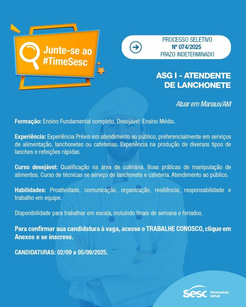 Sesc está selecionando para 03 cargos em Manaus; Saiba como se candidatar!