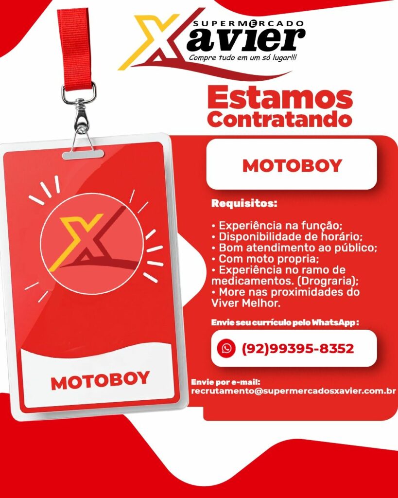 Supermercado Xavier está selecionando Operador (a) de Loja, Operador (a) de caixa, Auxiliar de açougue, Peixeiro, Manutenção, Confeiteiro, Açougueiro, Atendente de padaria, Motoboy; Envie seu currículo!