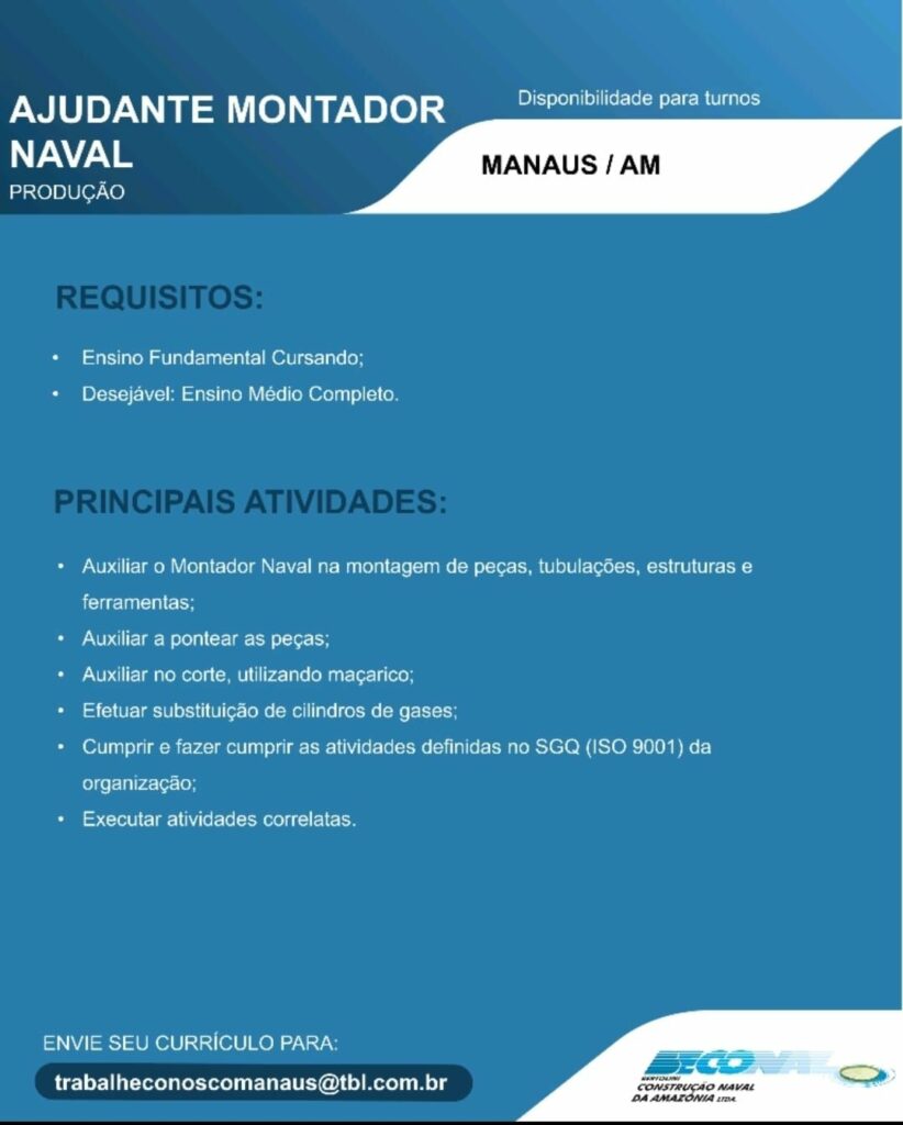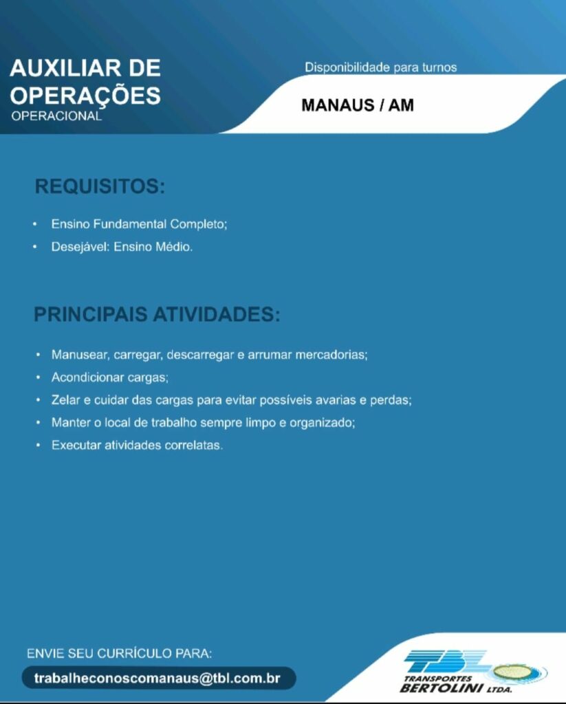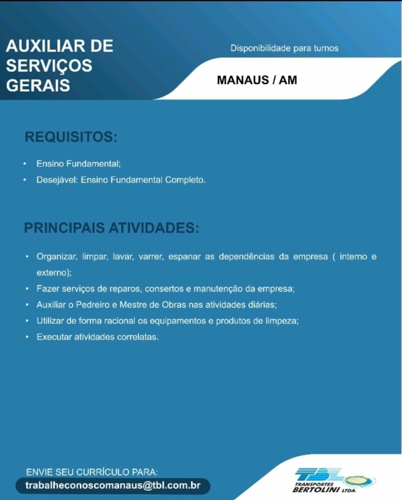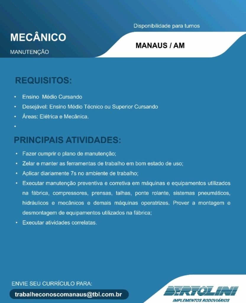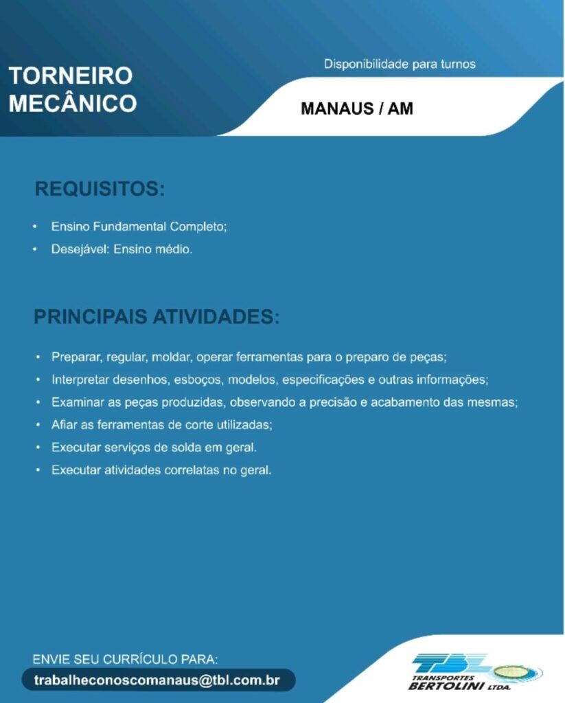 Transporte Bertolini Ltda seleciona Auxiliar de operações, Torneiro mecânico, Pintor Naval, Auxiliar de Soldador, Ajudante Montador Naval, Soldador, Montador Naval, Mecânico, Auxiliar de serviços gerais; Envie seu currículo!