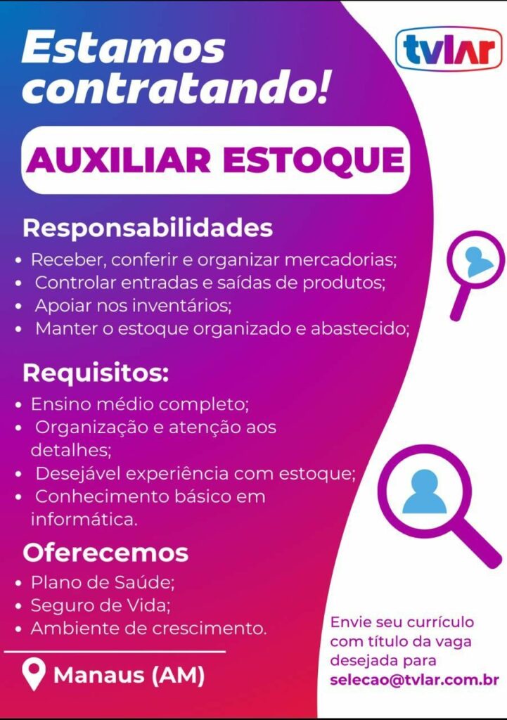 TV lar está selecionando Auxiliar de entrega, Auxiliar de estoque; Envie seu currículo!