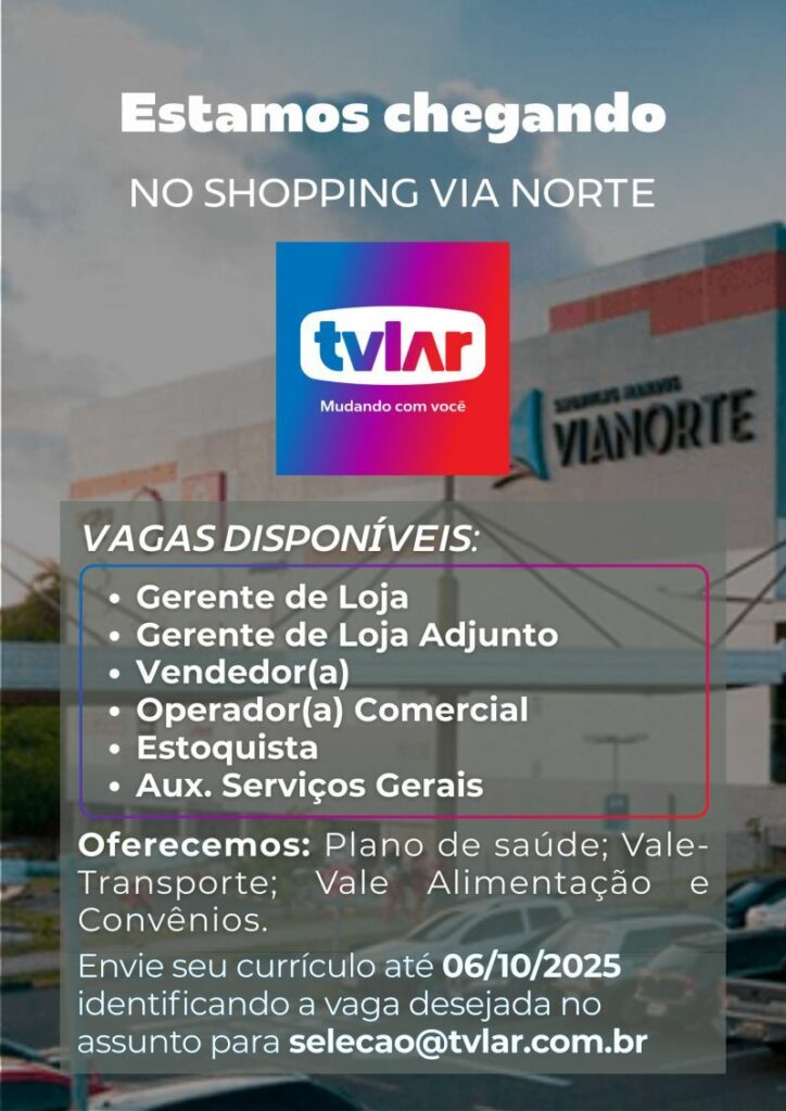 TV lar está selecionando Auxiliar de serviços gerais, Estoquista, Operador (a) comercial, Vendedor (a), Gerente de loja adjunto, Gerente de loja; Envie seu currículo!