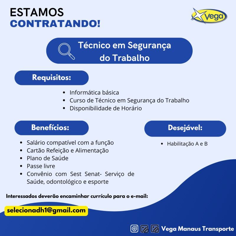 Vega Transportes está selecionando Técnico em segurança do trabalho; Envie seu currículo