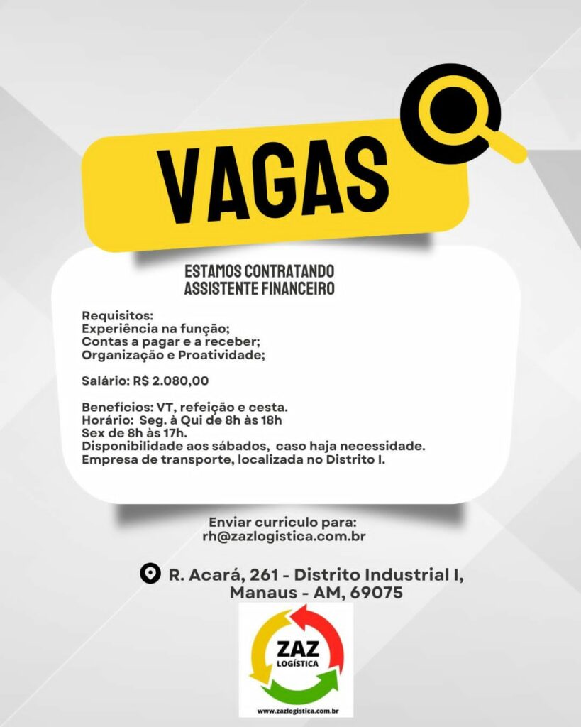 ZAZ logística seleciona Assistente financeiro, Motorista D; Envie seu currículo!