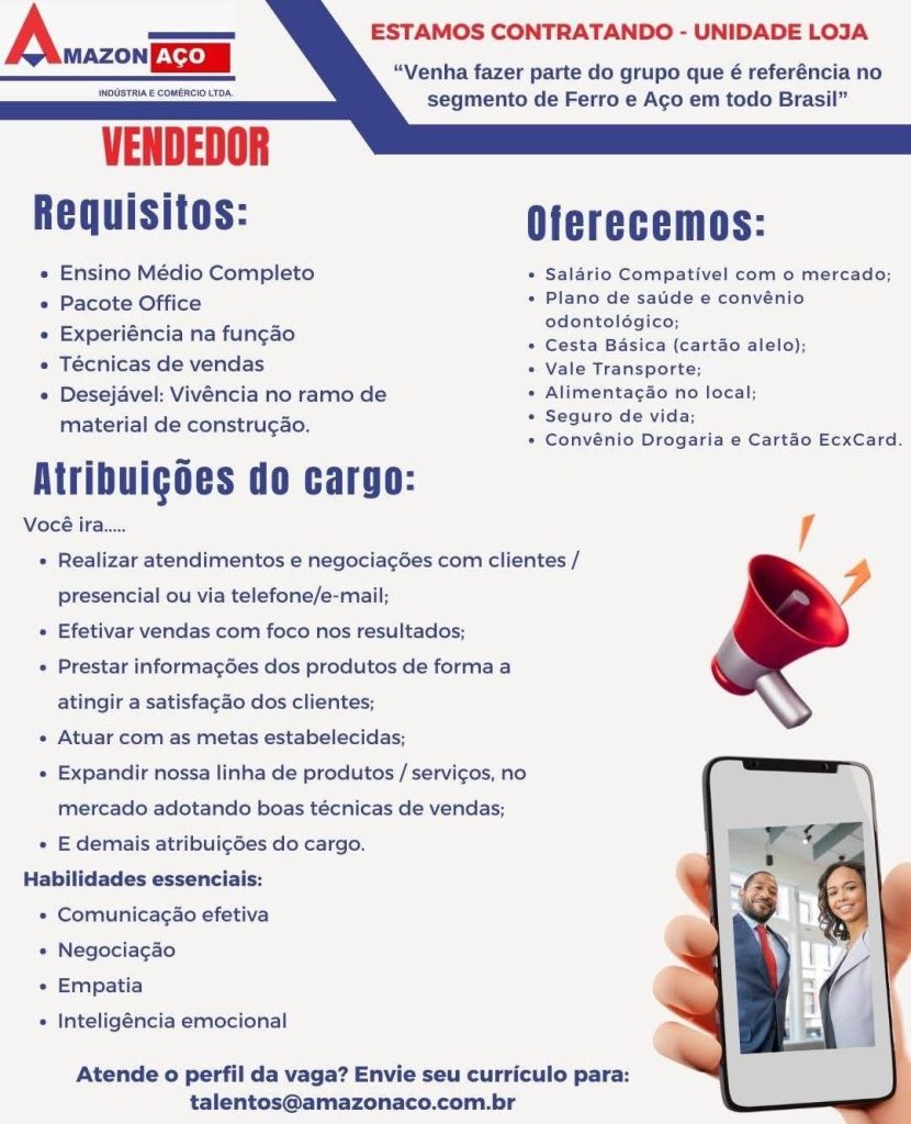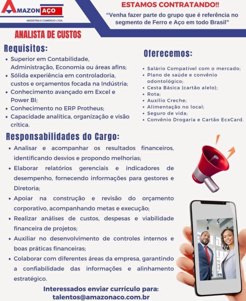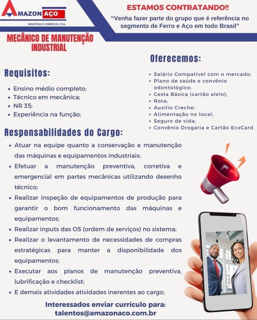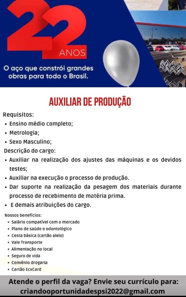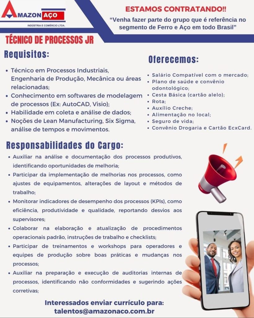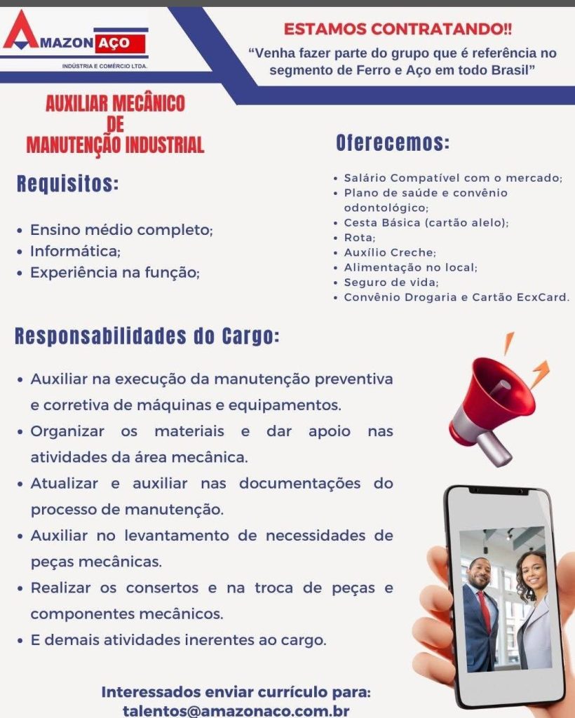 Amazon Aço está selecionando Auxiliares de Produção e mais onze cargos; Envie seu currículo!