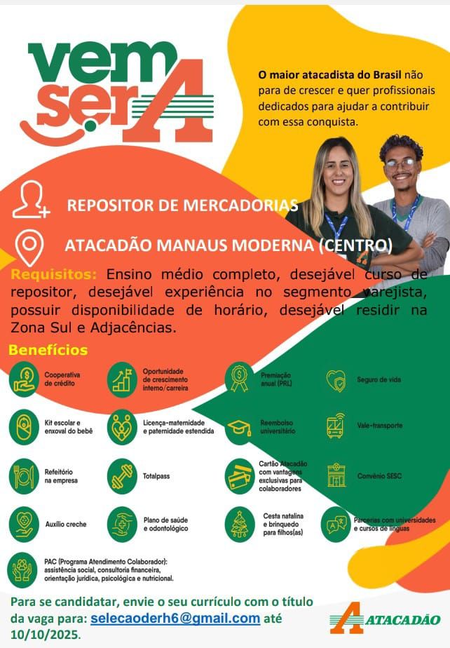 Atacadão Manaus moderna seleciona Repositor de mercadorias; Envie seu currículo!