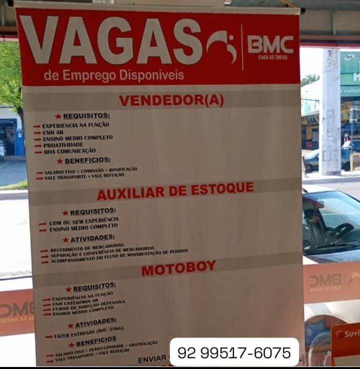 BMC casa de tintas seleciona Vendedor (a), Auxiliar de estoque, Motoboy; Envie seu currículo!