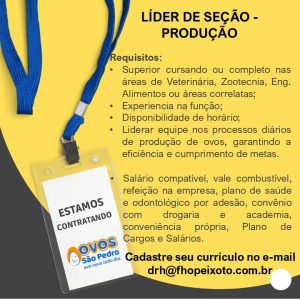 Confira as 0nze oportunidades de emprego oferecido pela empresa Ovos são pedro; Envie seu currículo!