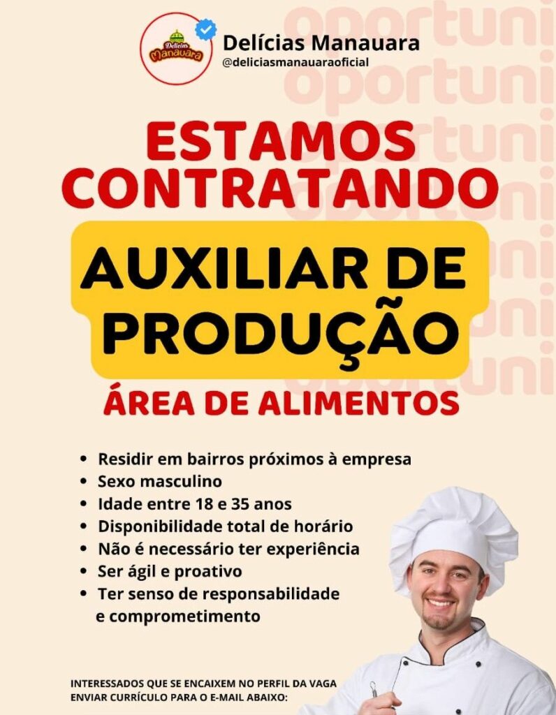 Delícias Manauara seleciona Auxiliar de produção, Auxiliar de serviços gerais; Envie seu currículo!