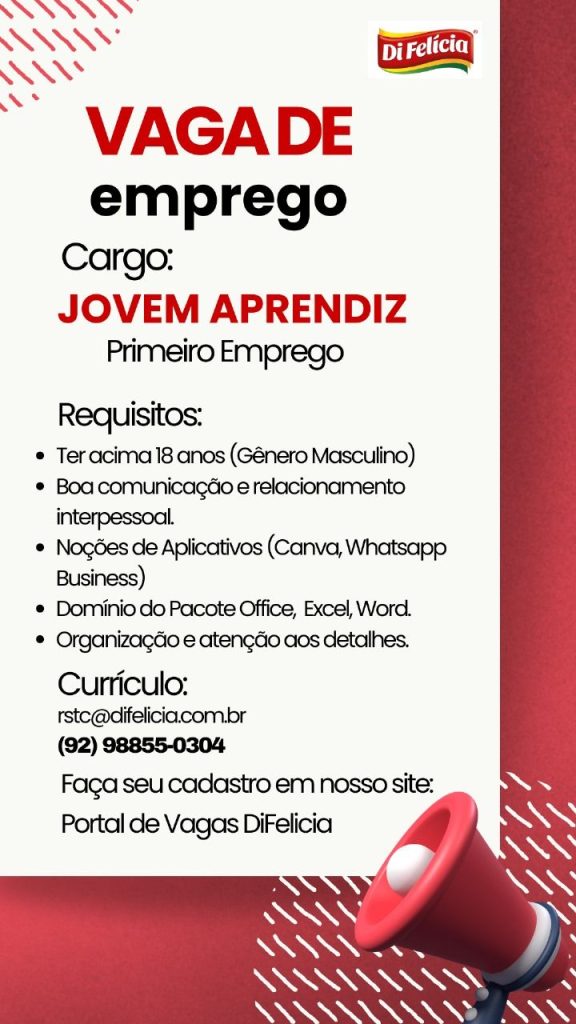 Di felícia está selecionando Jovem Aprendiz primeiro emprego; Envie seu currículo!
