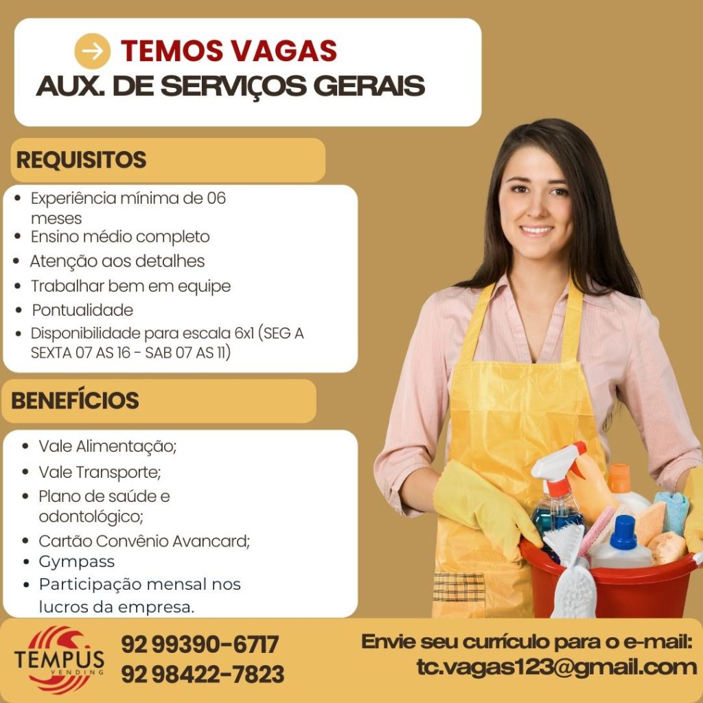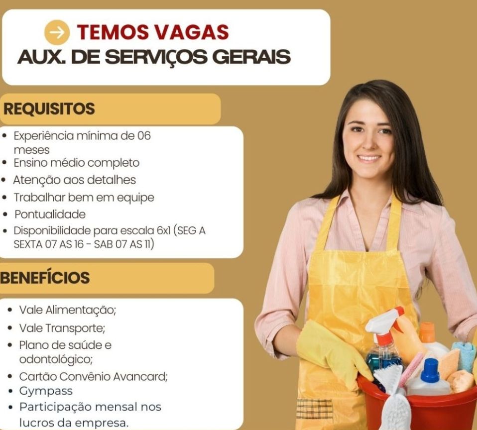 Empresa abre seleção para vaga de Auxiliar de serviços gerais; Envie seu currículo!