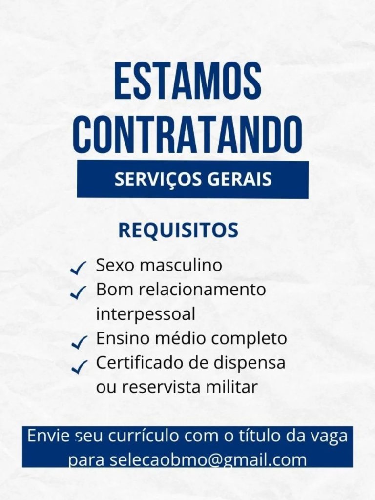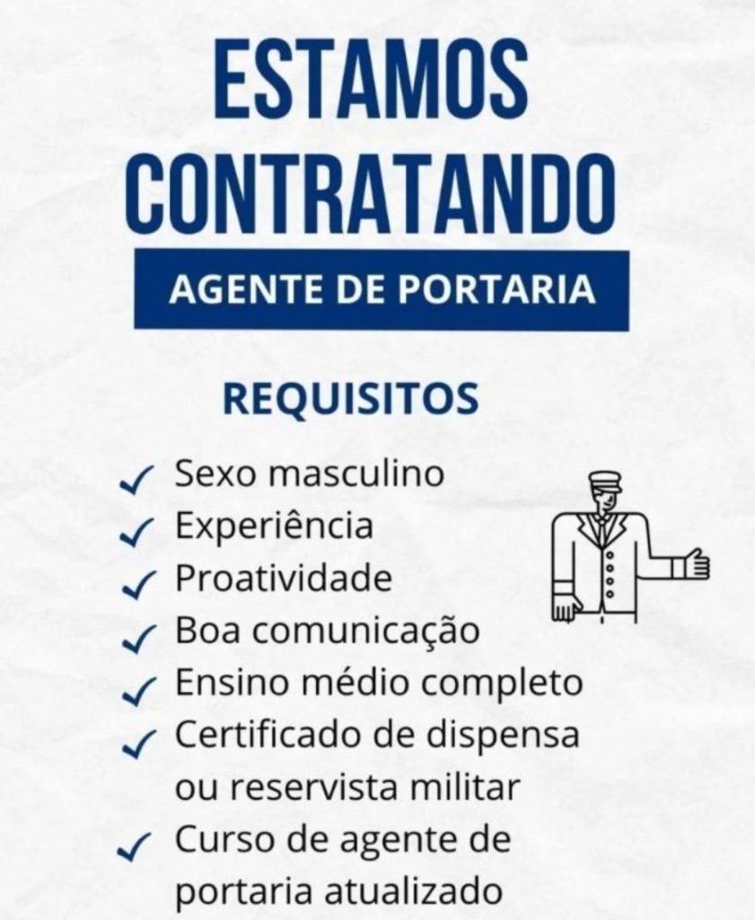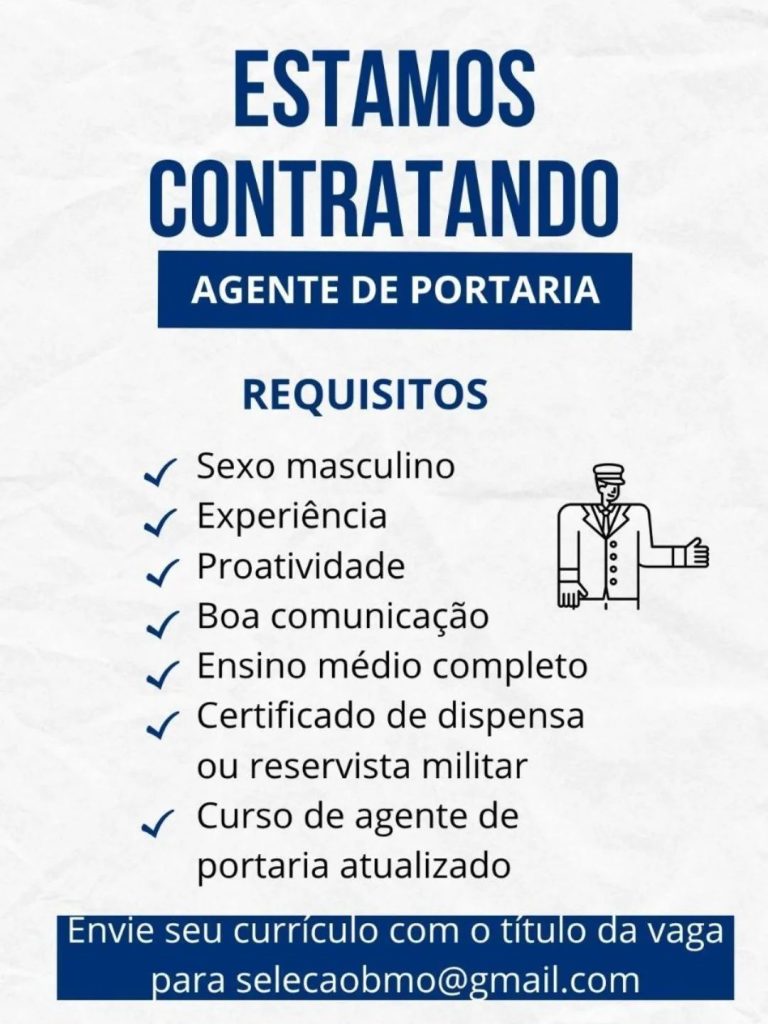 Empresa está selecionando Agente de portaria, Serviços Gerais; Envie seu currículo!