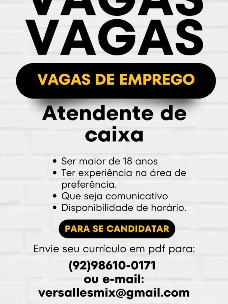 Empresa está selecionando Atendente de caixa; Envie seu currículo!