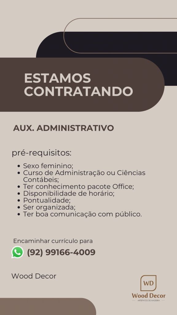 Empresa está selecionando Auxiliar administrativo; Envie seu currículo!