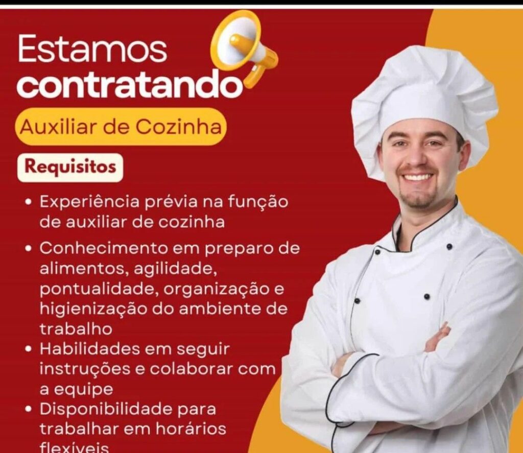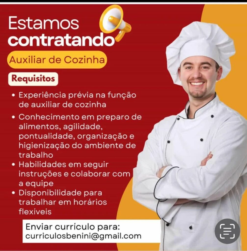 Empresa está selecionando Auxiliar de cozinha; Envie seu currículo!