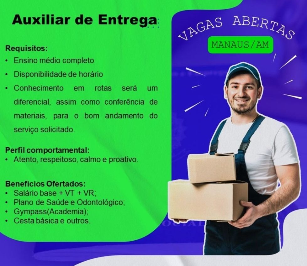 • Empresa está selecionando Auxiliar de entrega; Envie seu currículo!