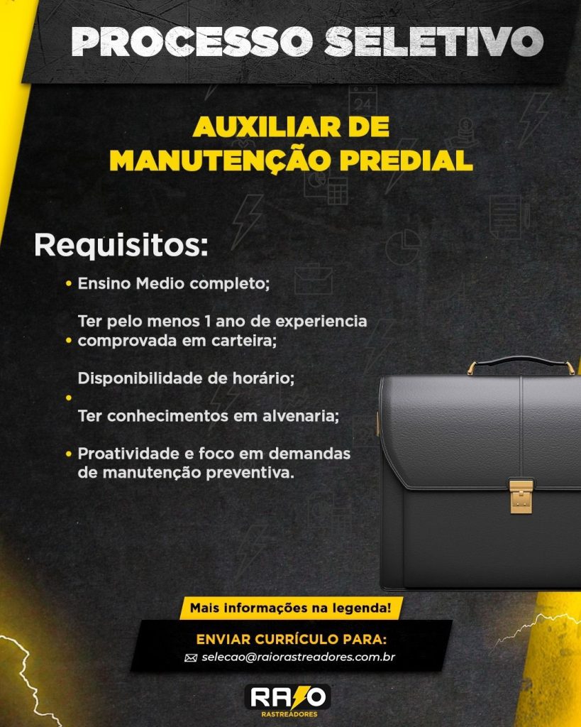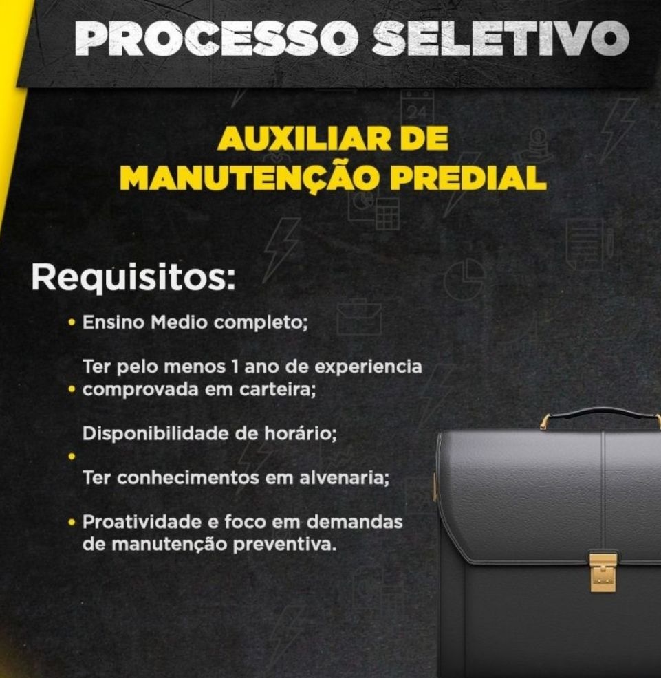 Empresa está selecionando Auxiliar de Manuntenção predial; Envie seu currículo!