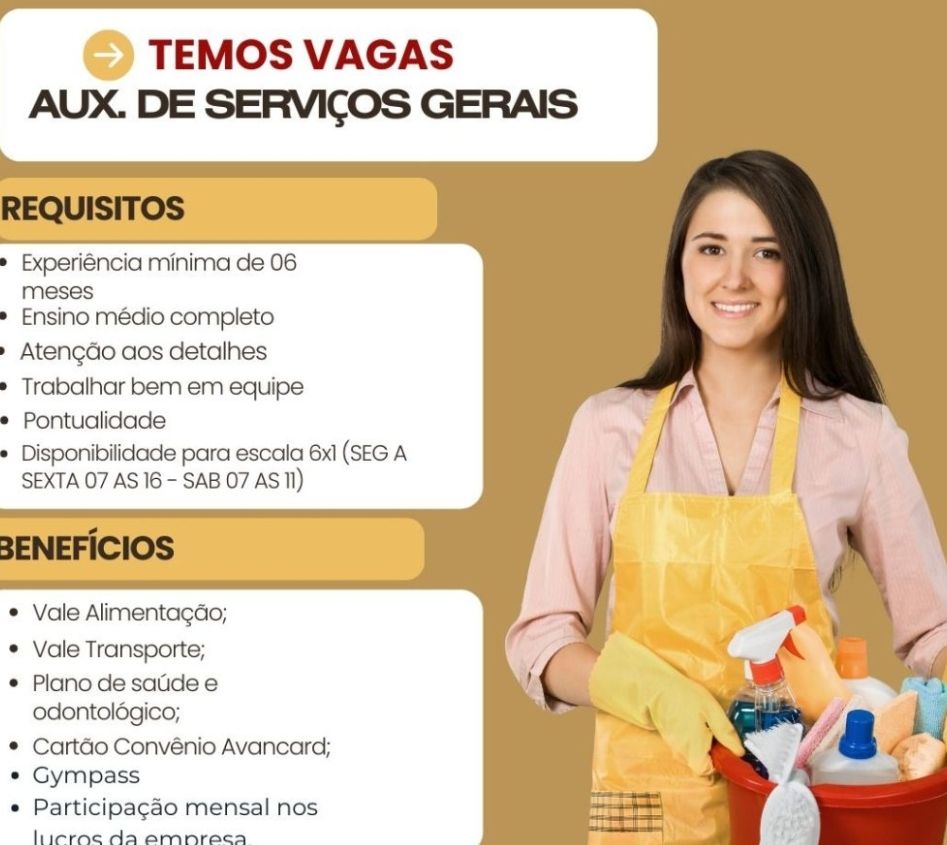 Empresa está selecionando Auxiliar de serviços gerais; Envie seu currículo!