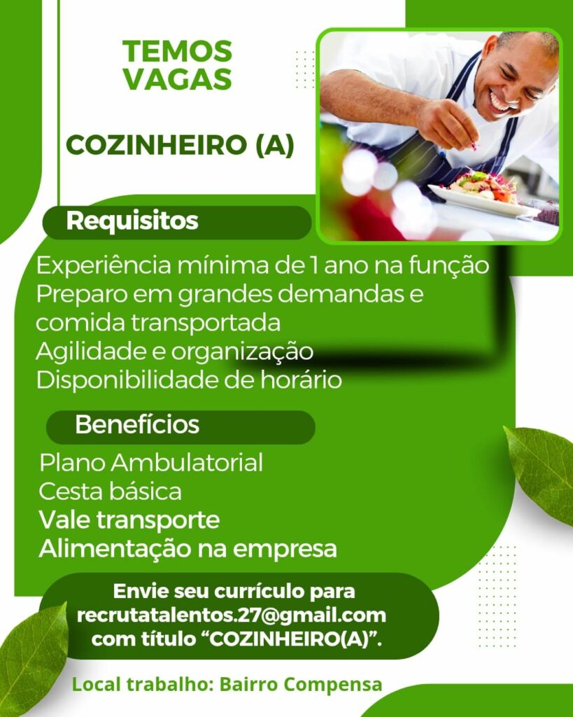 Empresa está selecionando Cozinheiro (a); Envie seu currículo!