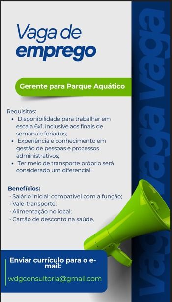 Empresa está selecionando Gerente de parque aquático; Envie seu currículo!