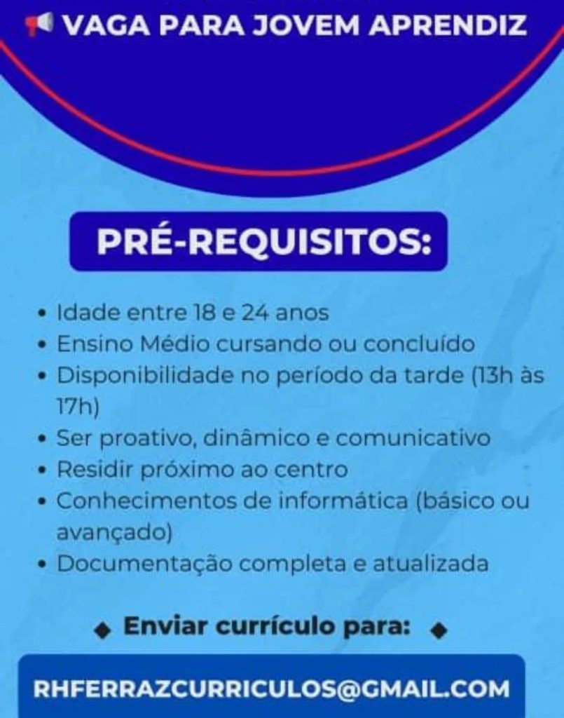Empresa está selecionando Jovem Aprendiz; Envie seu currículo!