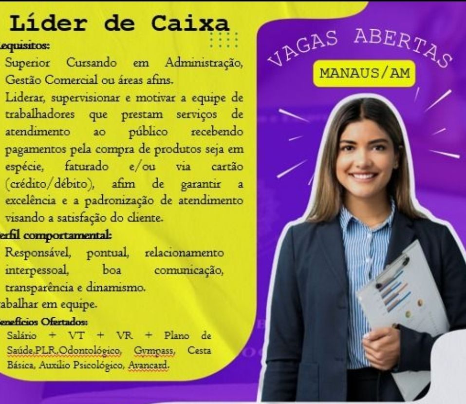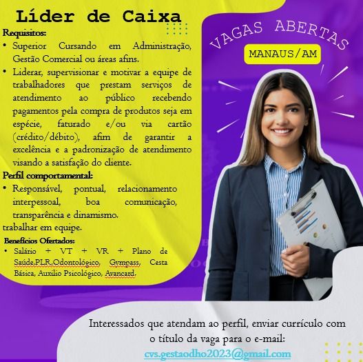 Empresa está selecionando Líder de caixa; Envie seu currículo!