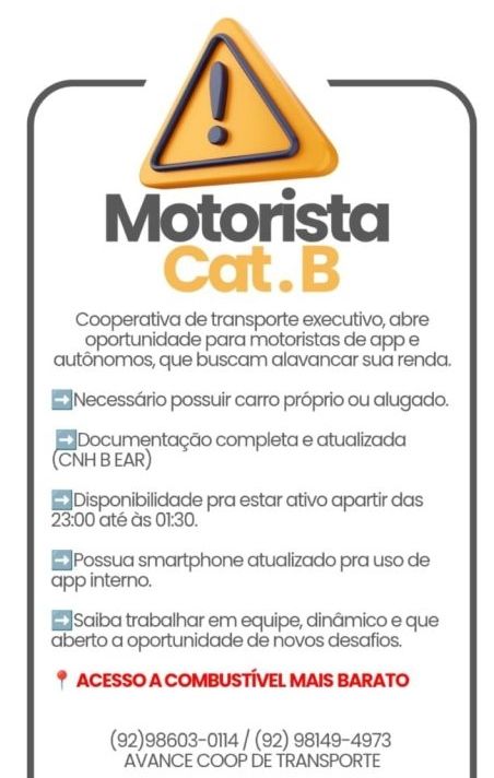 Empresa está selecionando Motorista Cat B; Envie seu currículo!