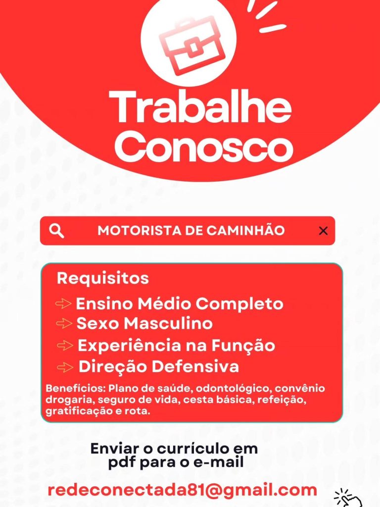 Empresa está selecionando Motorista de caminhão, Motorista carreteiro, Motorista operador de munck, Ajudante de caminhão, Ajudante de expedição; Envie seu currículo!