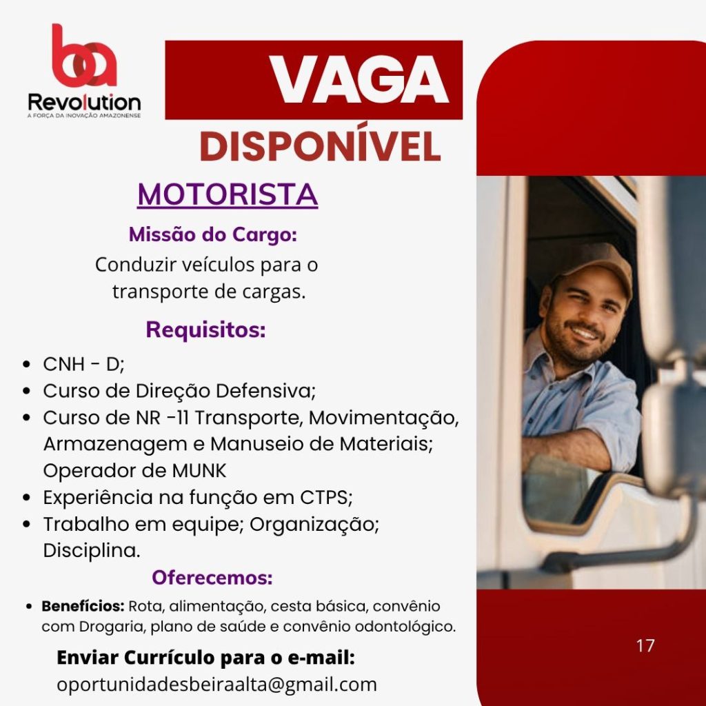 • Empresa está selecionando Motorista, Eletricista; Envie seu currículo!