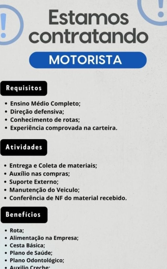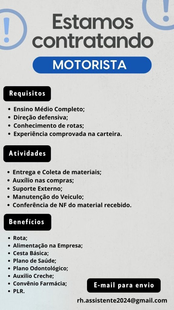 Empresa está selecionando Motorista, Mecânico Manuntenção, Analista fiscal; Envie seu currículo!