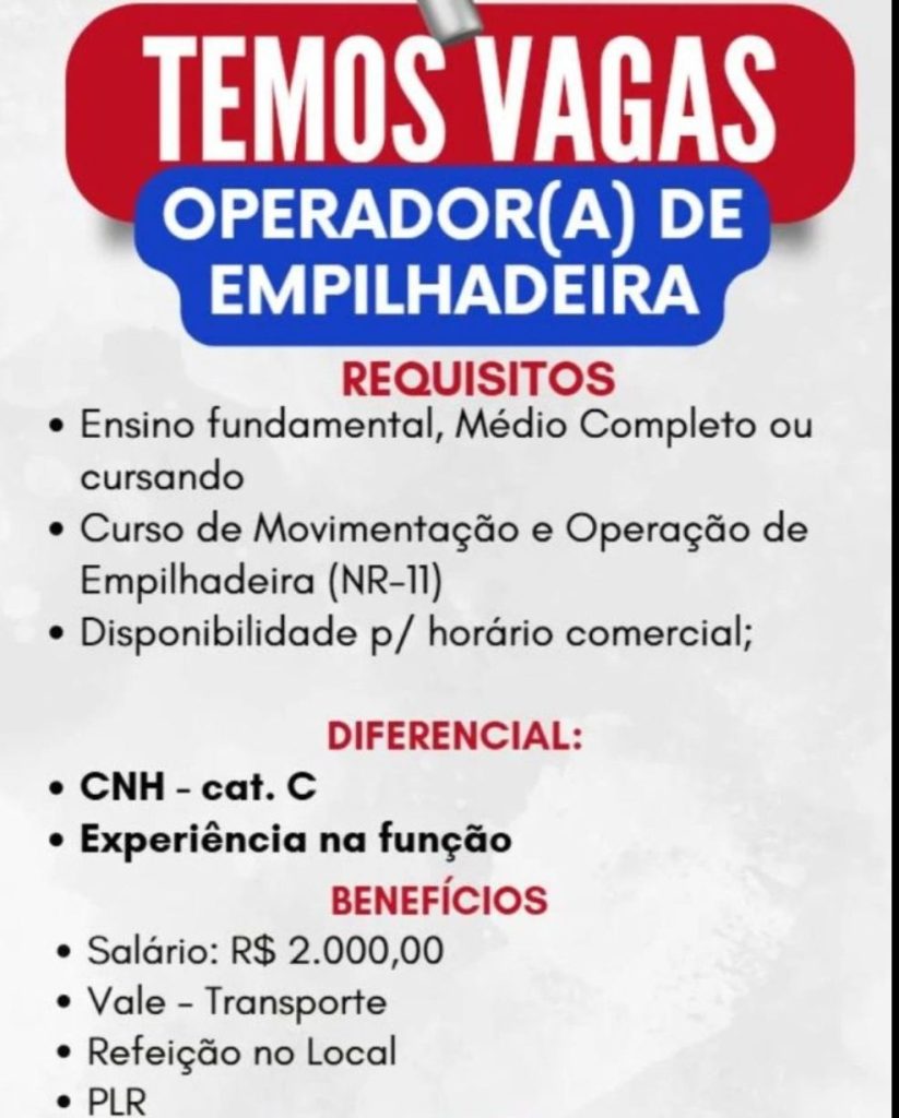 Empresa está selecionando Operador (a) de Empilhadeira; Envie seu currículo!