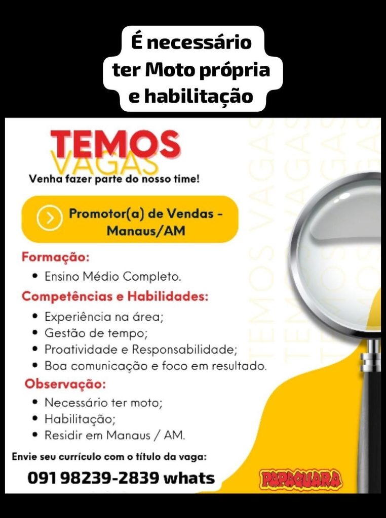 Empresa está selecionando Promotor (a) de vendas; Envie seu currículo!