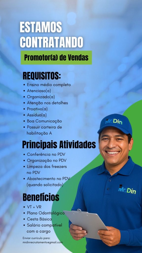 Empresa está selecionando Promotor de vendas; Envie seu currículo!