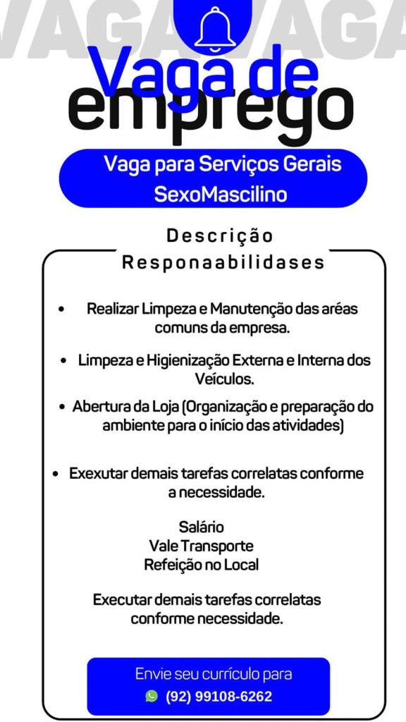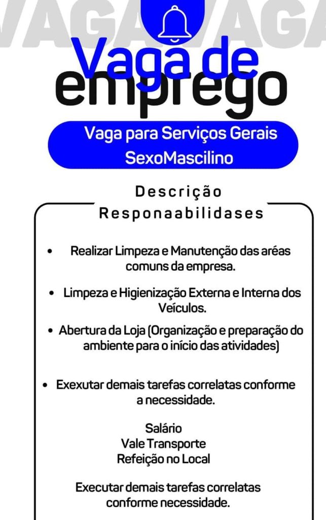 Empresa está selecionando Serviços Gerais; Envie seu currículo!