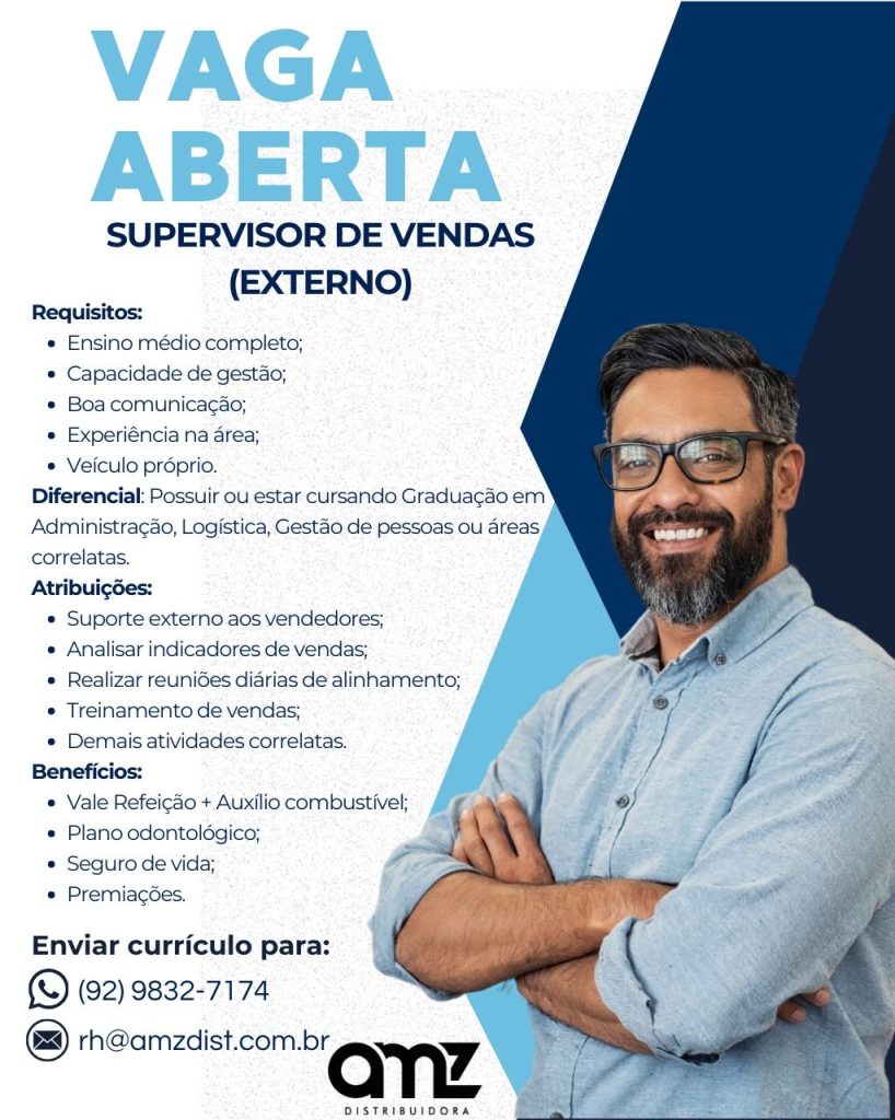 Empresa está selecionando Supervisor de vendas externo; Envie seu currículo!