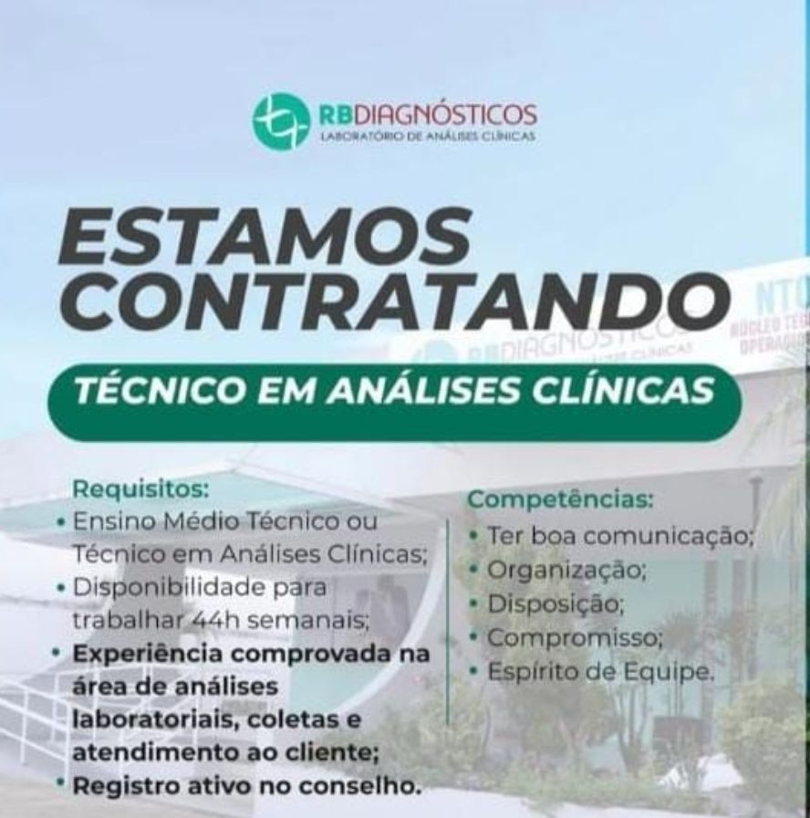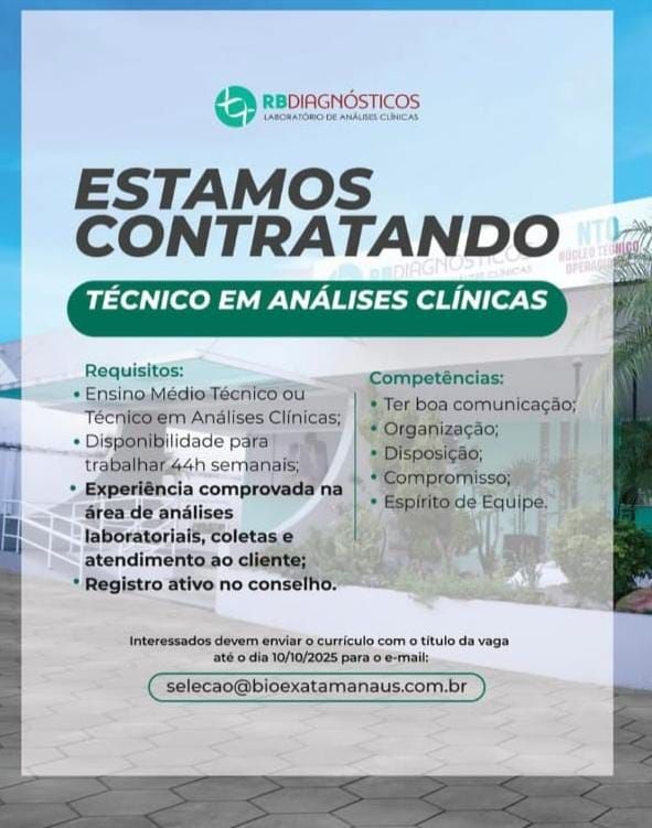 Empresa está selecionando Técnico em Análises clínicas; Envie seu currículo!