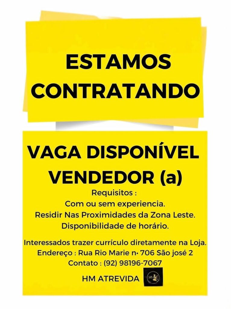 Empresa está selecionando Vendedor (a); Envie seu currículo!