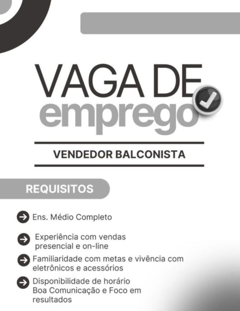 Empresa está selecionando Vendedor Balconista; Envie seu currículo!