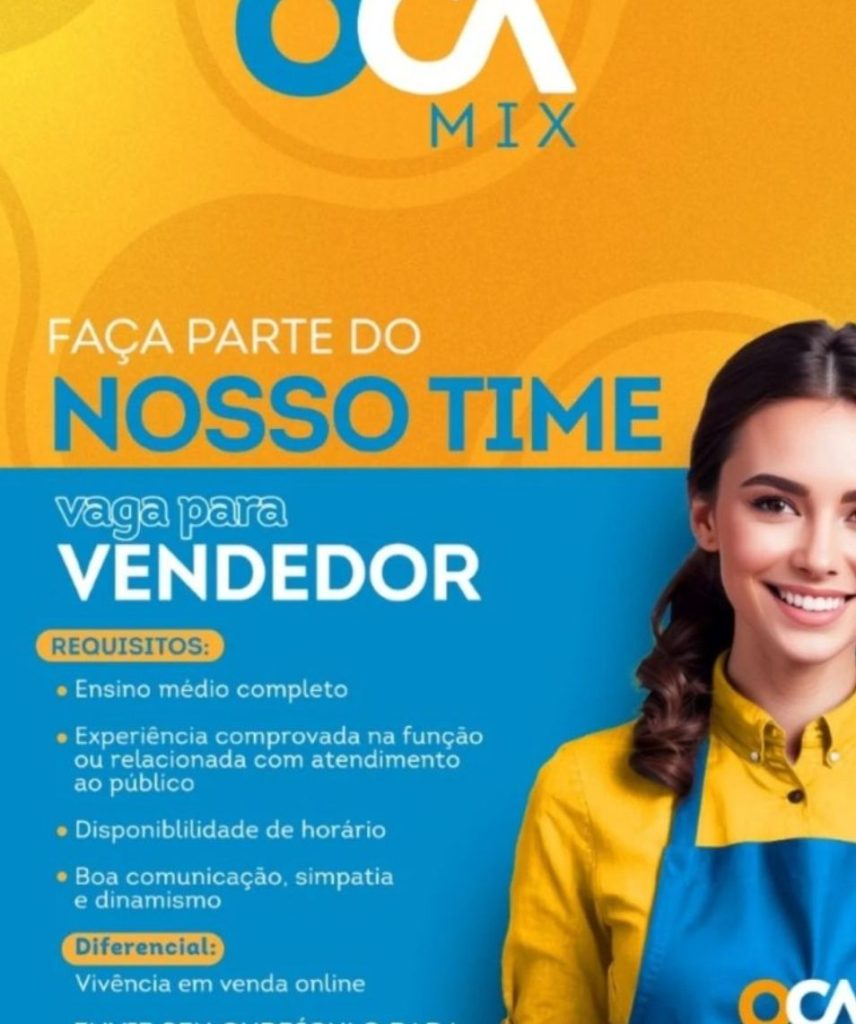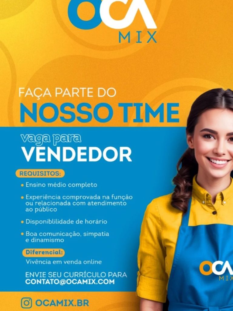 Empresa está selecionando Vendedor; Envie seu currículo!