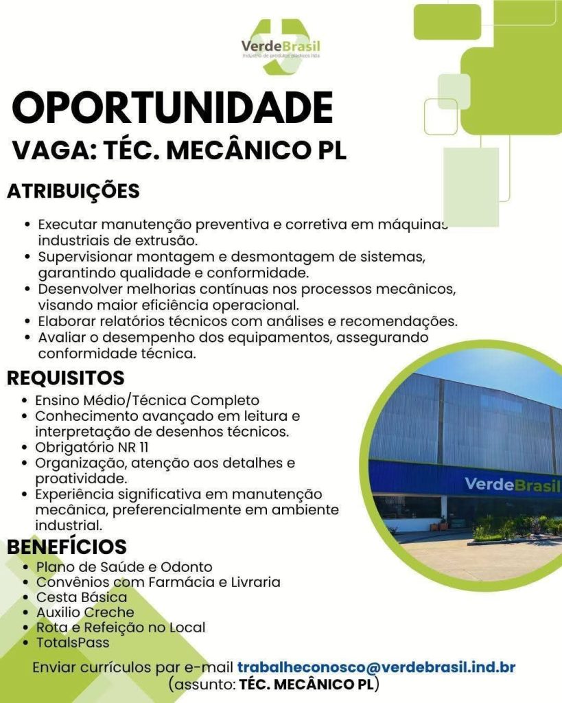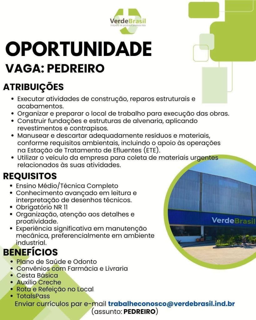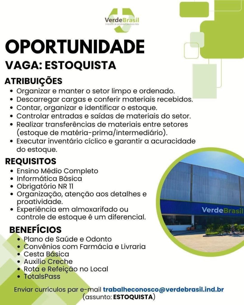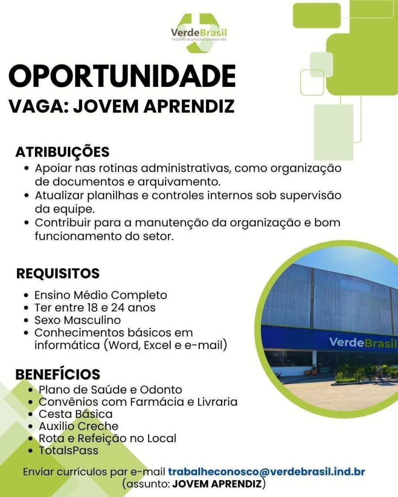 Empresa Verde Brasil está selecionando Jovem Aprendiz e Mais 03 cargos; Envie seu currículo!