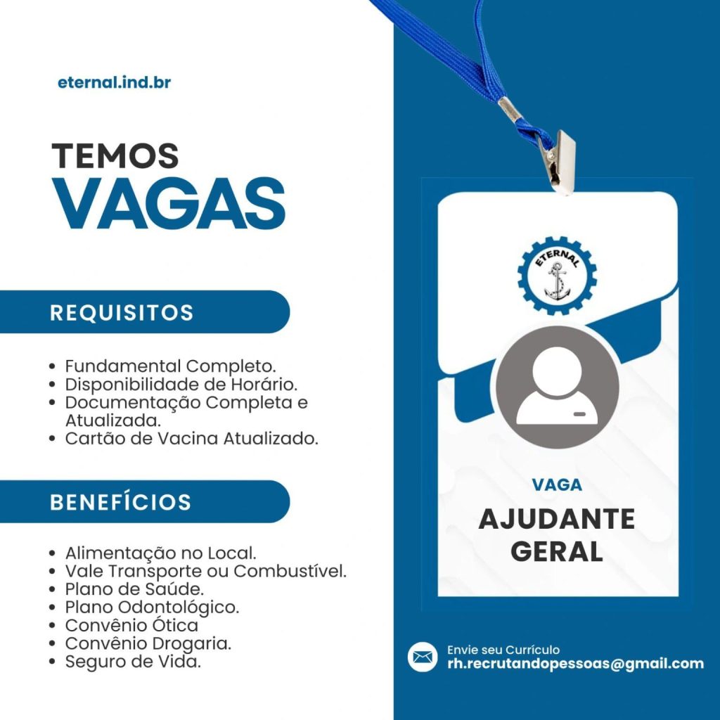 Eternal indústria seleciona Ajudante geral; Envie seu currículo!