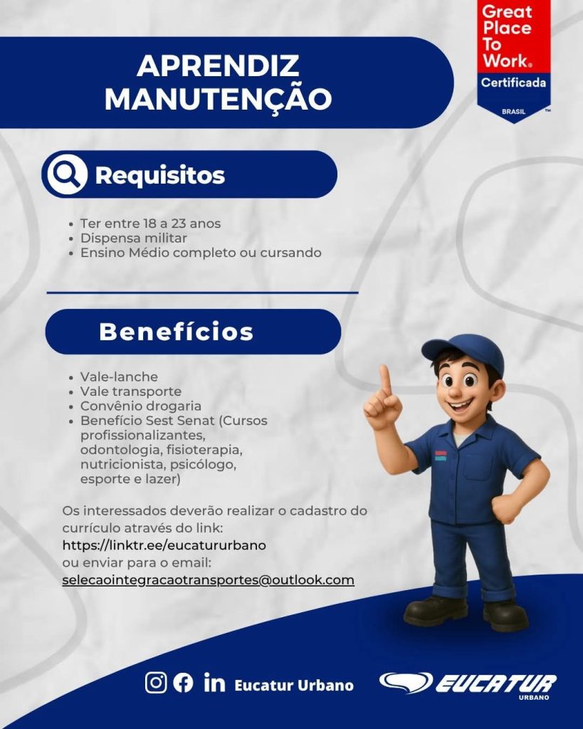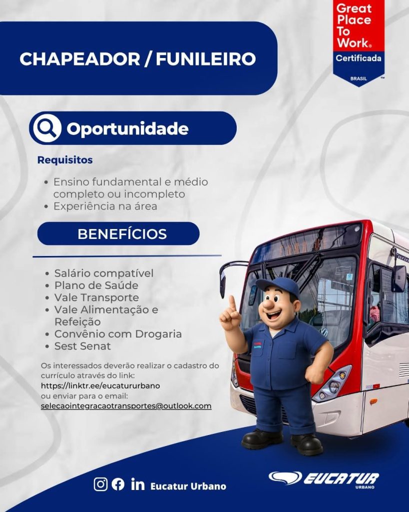O processo seletivo para esta(s) vaga(s) não cobra absolutamente nada pela sua candidatura. Portanto, jamais aceite qualquer tipo de cobrança para cadastrar seu currículo.