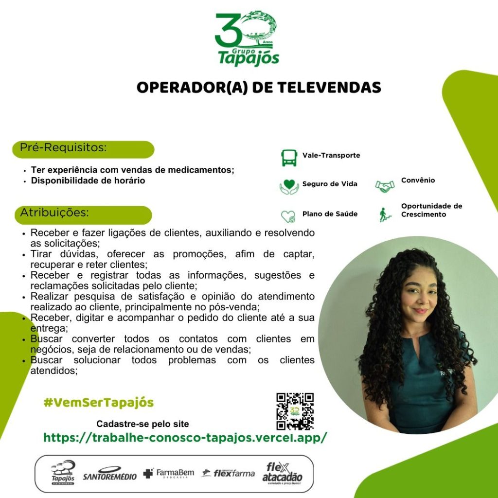 Grupo Tapajós seleciona Operador (a) de televendas; Envie seu currículo!