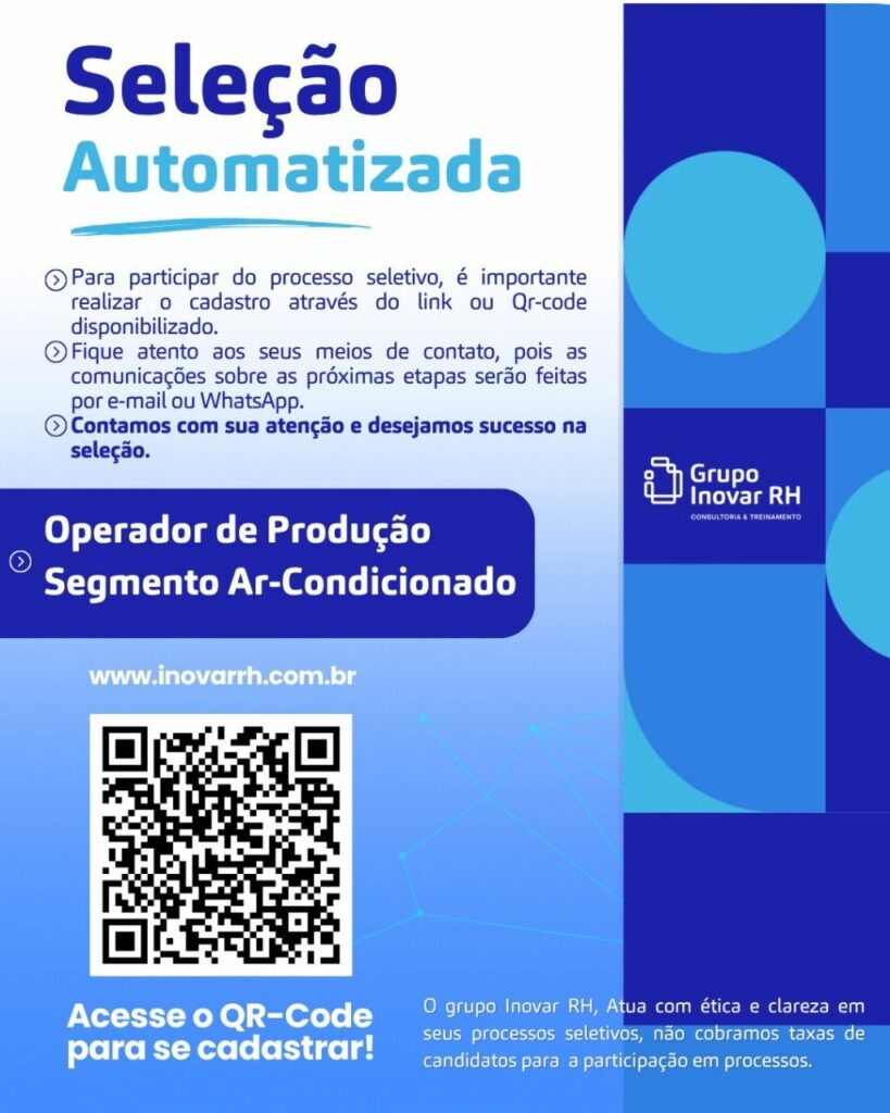 Indústria do segmento Ar condicionado está selecionando Operador de produção; Envie seu currículo!