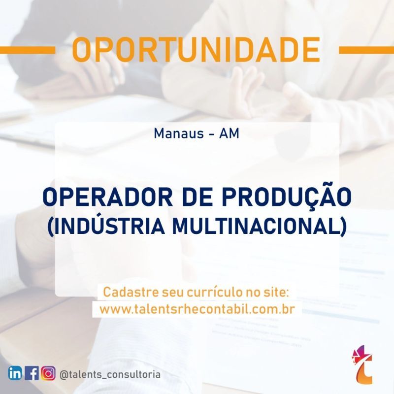 Indústria Multinacional seleciona Operador de produção; Envie seu currículo!