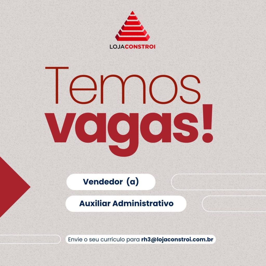 Loja Constrói está selecionando Vendedor (a), Auxiliar administrativo; Envie seu currículo!