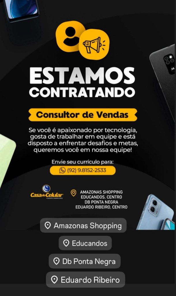 Loja de celular está selecionando Consultor de vendas; Envie seu currículo!