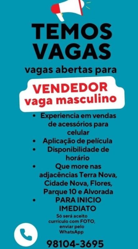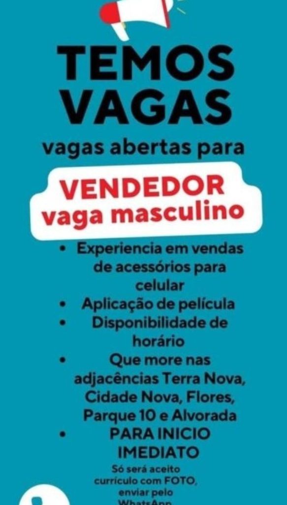Loja de celular está selecionando Vendedor; Envie seu currículo!