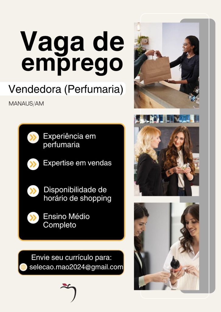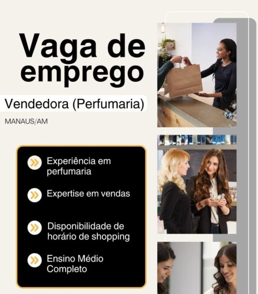 Loja está selecionando Vendedora de perfumaria; Envie seu currículo!